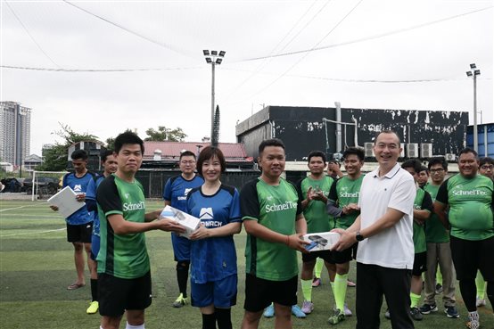 賽后,肖平和Heng Socheat先生共同為獲得最佳球員獎(jiǎng)、最佳射手獎(jiǎng)、最佳球風(fēng)獎(jiǎng)的球員頒獎(jiǎng)。肖平表示,SchneiTec公司作為中機(jī)對(duì)外柬埔寨西港輸變電項(xiàng)目和柬泰邊境至馬德望500kV輸電線項(xiàng)目的業(yè)主,本次友誼賽意義重大,為中柬雙方公司提供了十分寶貴的交流機(jī)會(huì),極大增進(jìn)了彼此間的了解與信任,本次比賽不僅激發(fā)了大家強(qiáng)身健體的意識(shí),增強(qiáng)了各自的團(tuán)隊(duì)凝聚力,也為日后共同開(kāi)展更多豐富多彩的活動(dòng)打下了基礎(chǔ)。