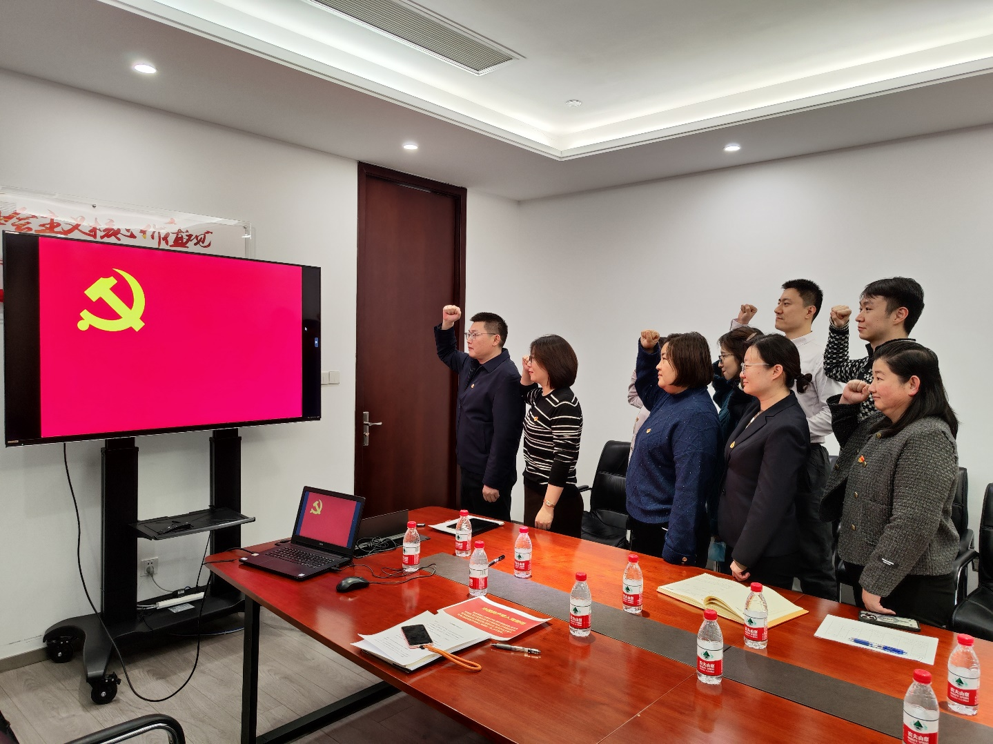 宣誓儀式在莊嚴雄偉的《國際歌》中拉開帷幕,支部書記帶領預備黨員陳敏同志面向黨旗莊嚴宣誓,與會黨員一起宣誓,重溫入黨誓詞。陳敏同志表示,今后將在思想上、行動上始終同黨組織保持高度一致,不斷提高自身綜合素質,加強業務技術知識學習,以身作則,率先垂范,在自己的工作崗位上竭心盡力攻難關,持之以恒做貢獻。