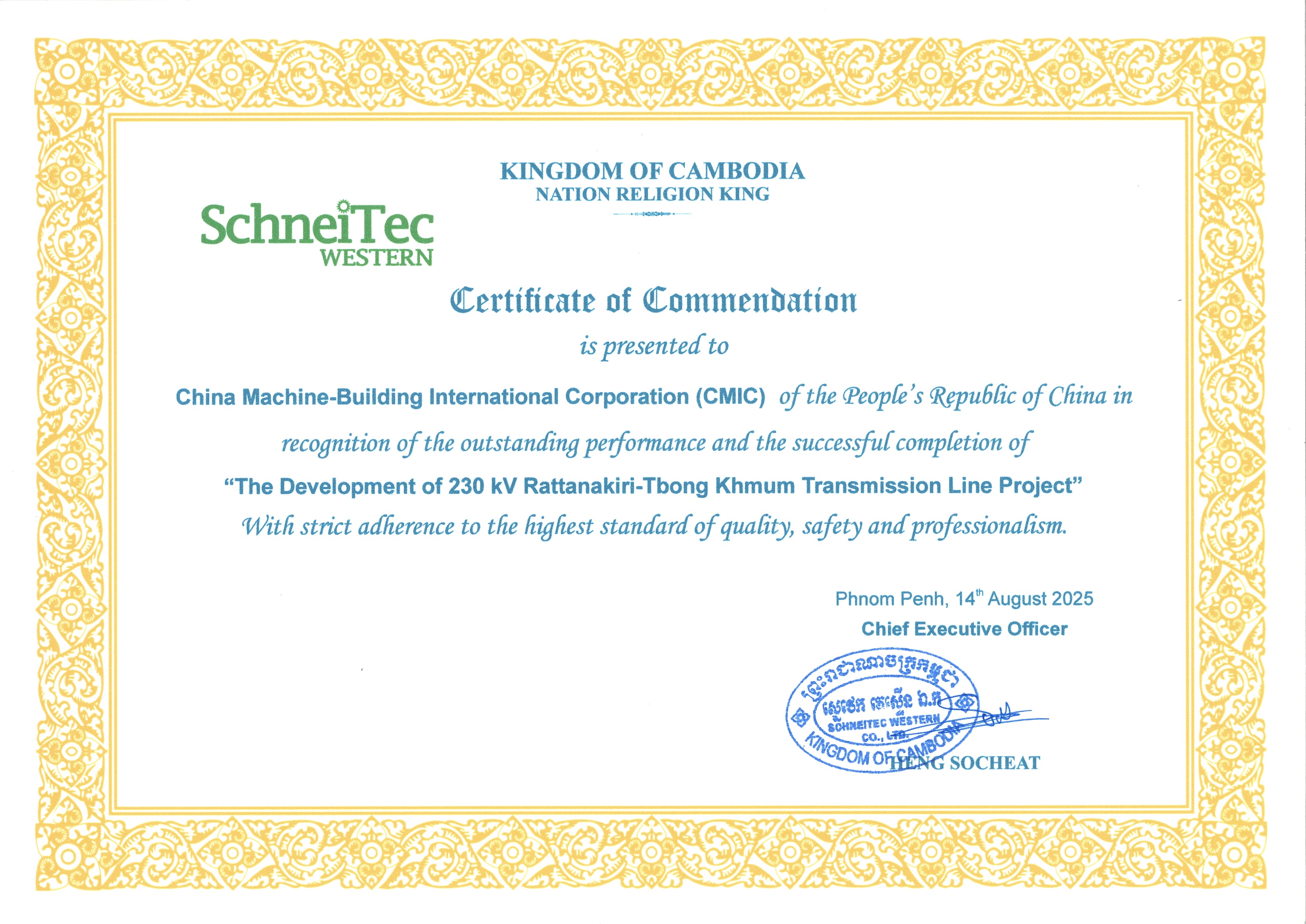 此次表彰不僅彰顯了公司在電力工程領域的綜合實力,也進一步提升了公司在柬埔寨及國際市場的品牌影響力。中機對外將以此為契機,持續發揮專業優勢,深化國際合作,推動更多優質項目落地實施,為全球清潔能源發展和互聯互通建設貢獻中國力量。